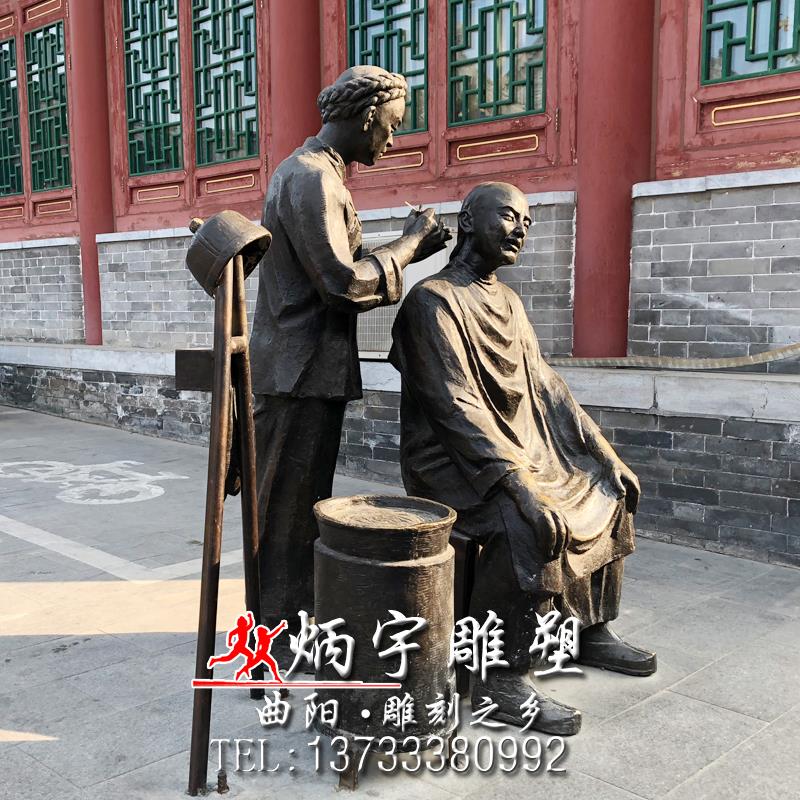 剃頭理發(fā)人物雕塑 古代人物雕塑 銅雕人物