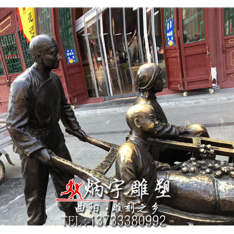 推車人物雕塑 一家三口親情雕塑 銅雕廠家