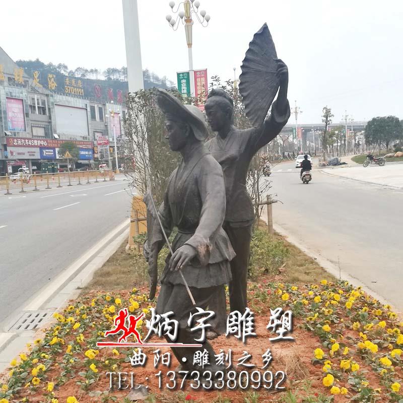 扭秧歌人物雕塑 古代人物銅雕 鑄銅人物