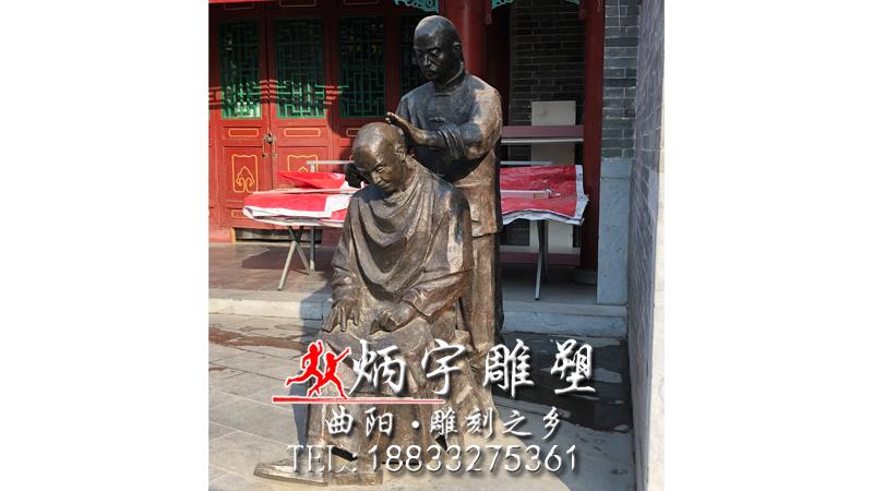 剃頭理發(fā)人物雕塑 鑄銅人物雕塑 古代人物雕塑