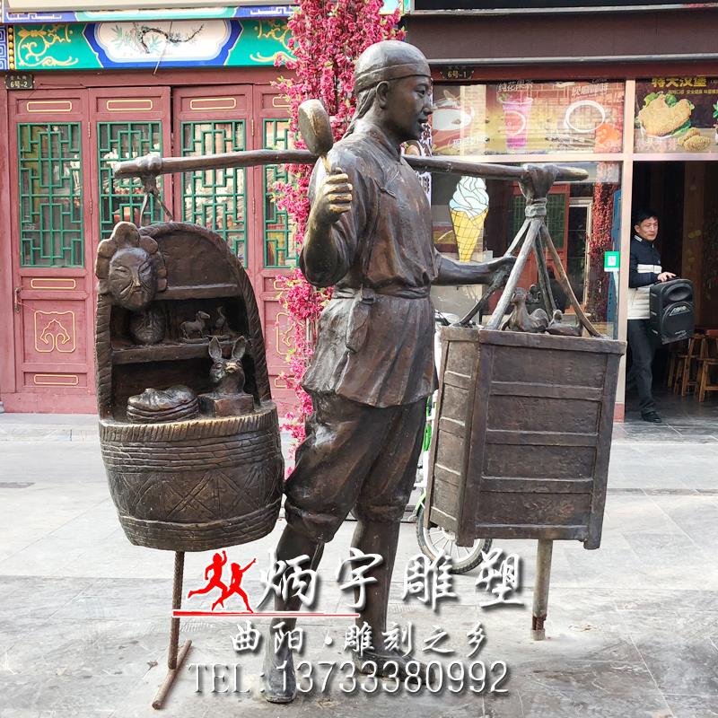 古代賣貨郎雕塑 鑄銅人物雕塑 街頭商販雕塑